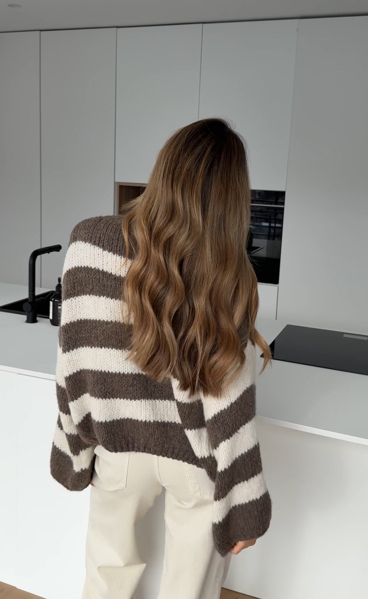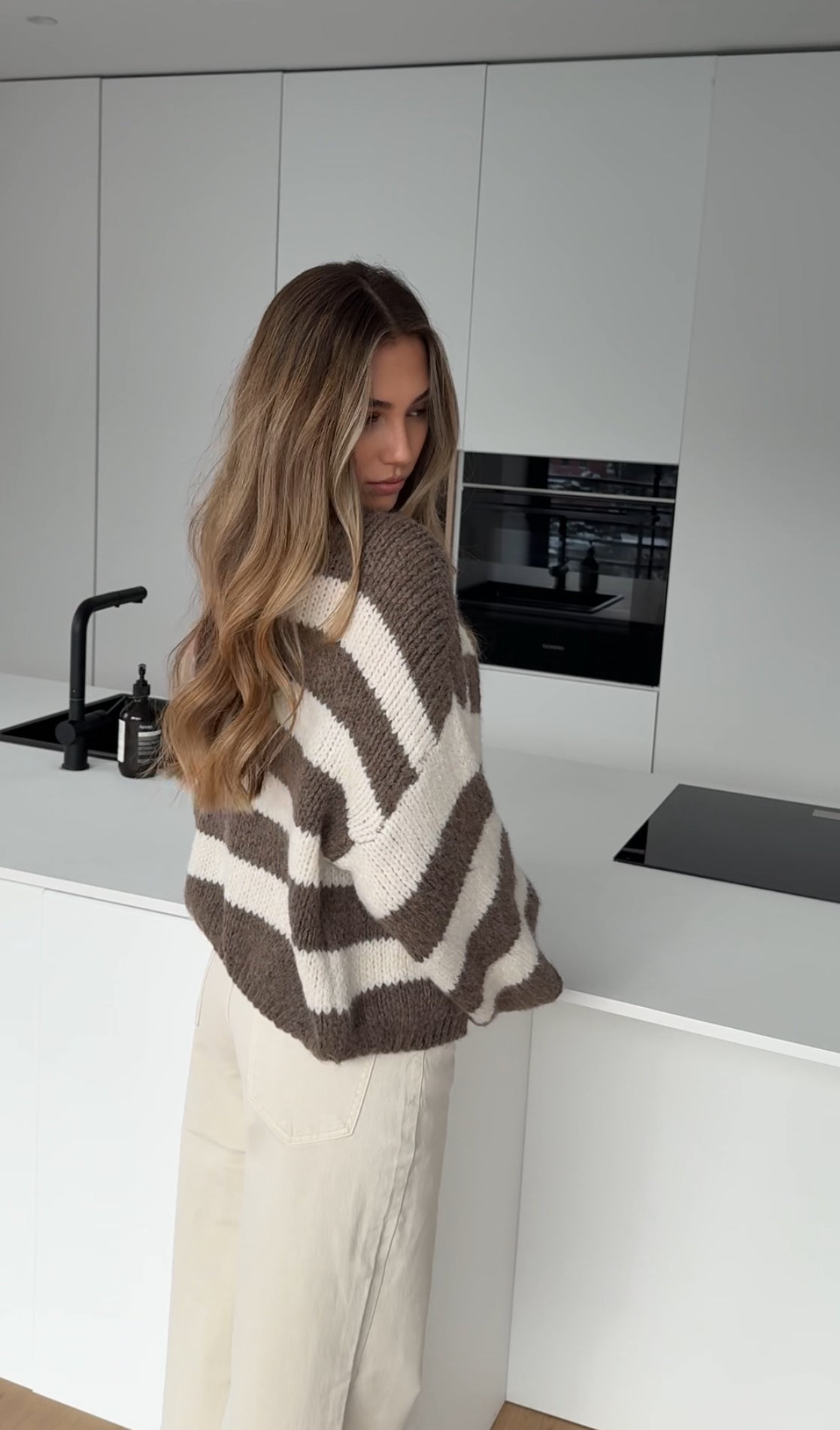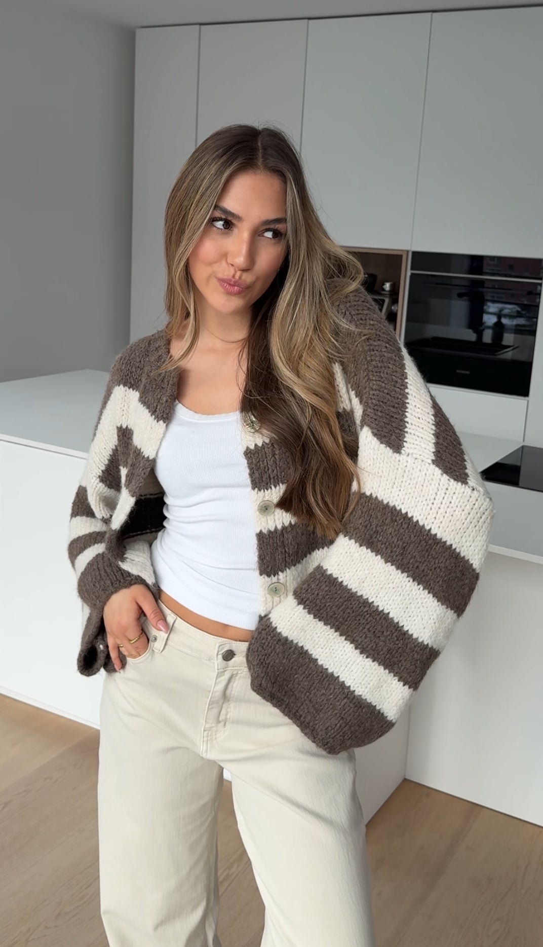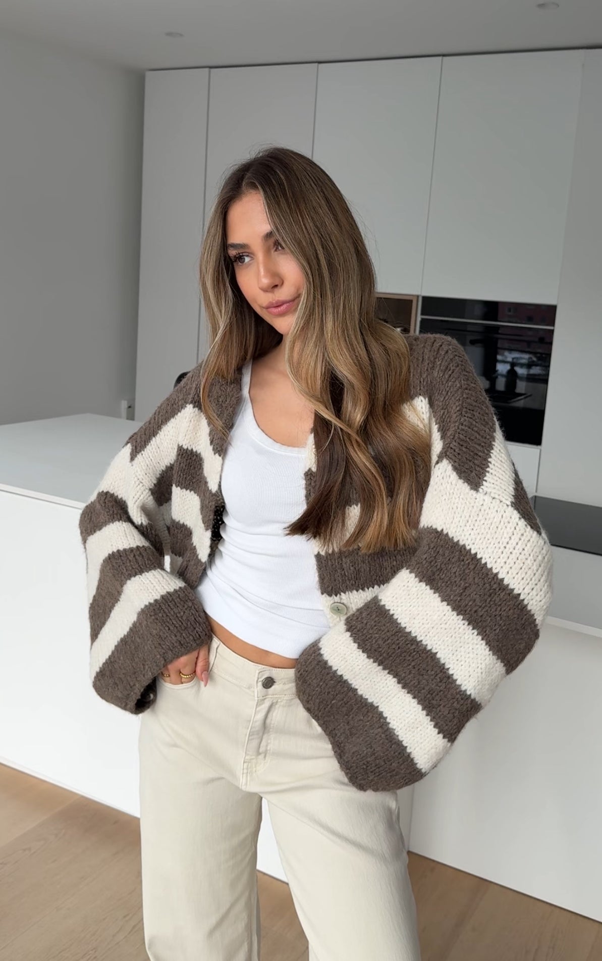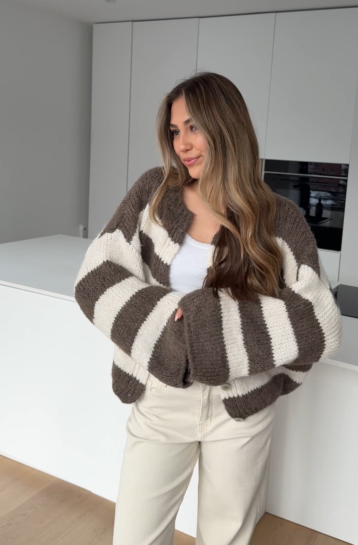 CHUNKY STRIPED CARDIGAN TOFFEE
