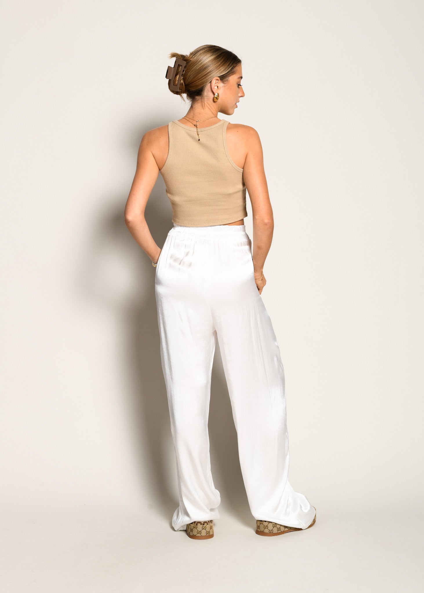 ARTIKELDETAILS: Lange fließende Stoffhose in Satinoptik