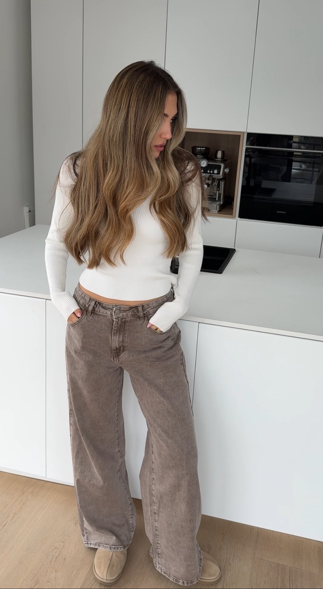 WIDE LEG JEANS LIGHT BROWN