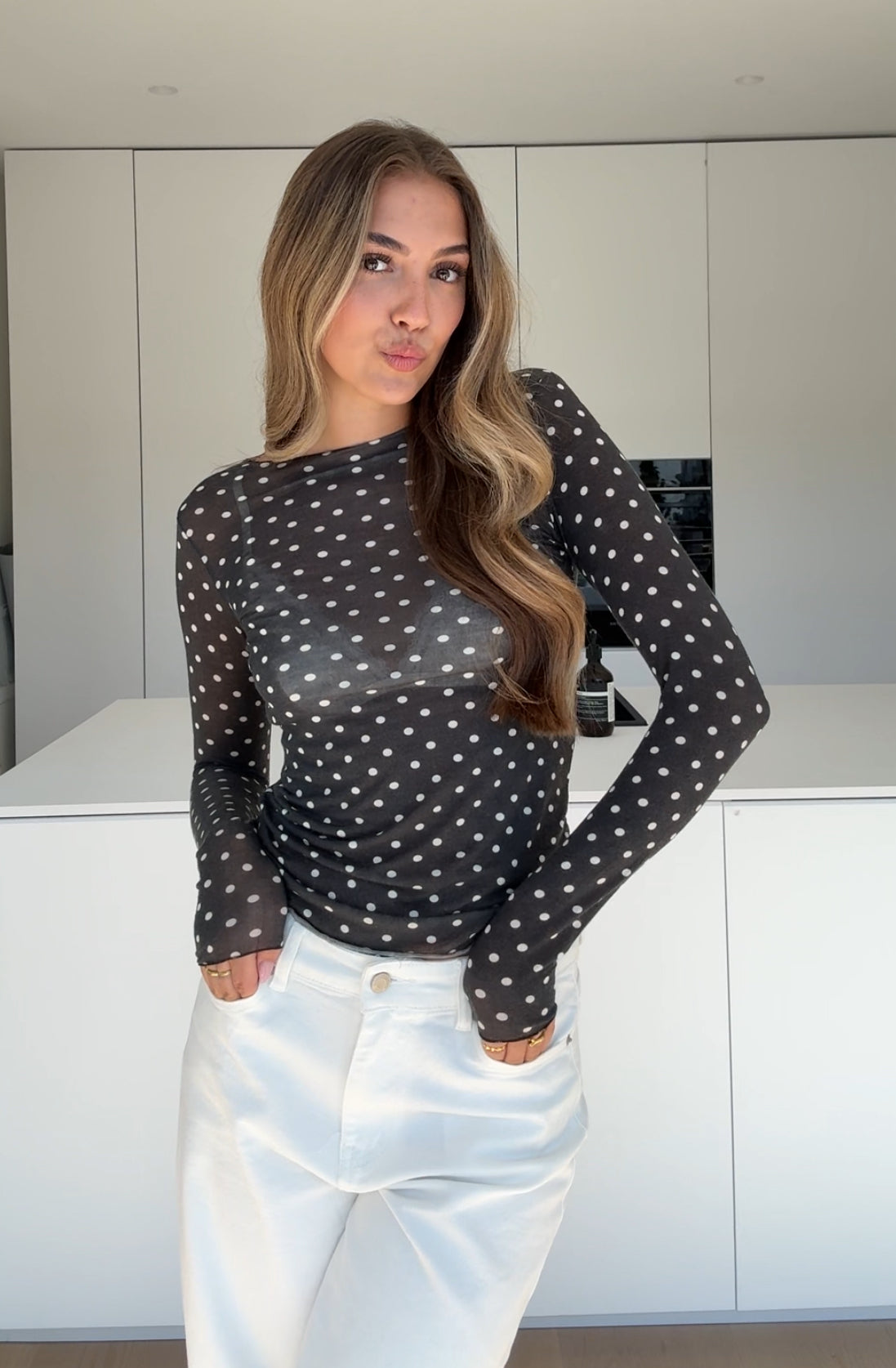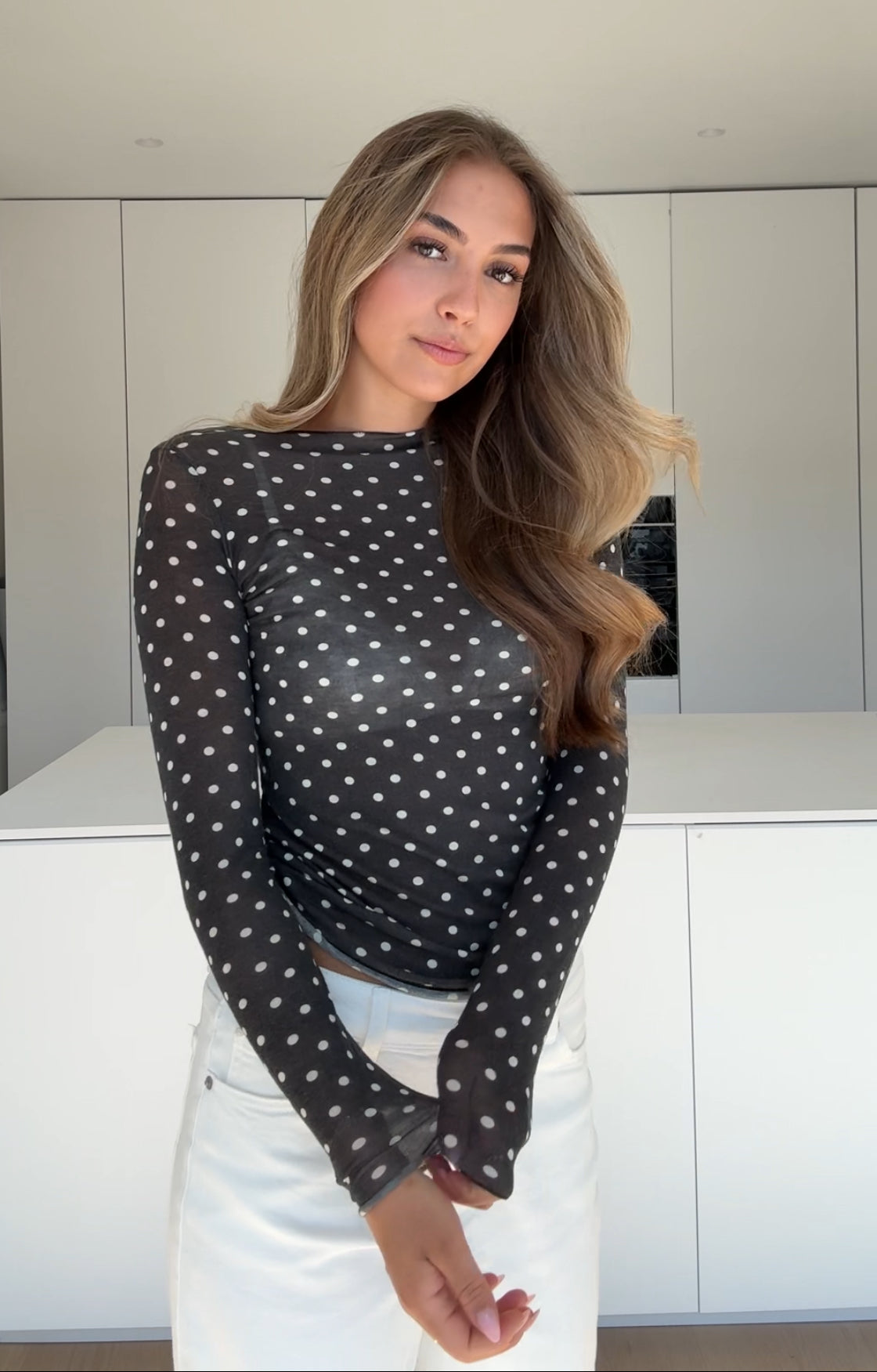 SEAMLESS LONGTOP POLKA DOT BLACK