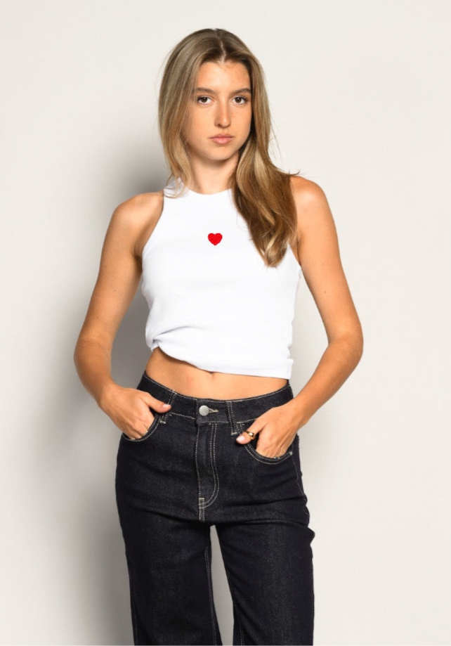 hochwertiges Top aus Baumwolle mit gesticktem Herz-Patch
