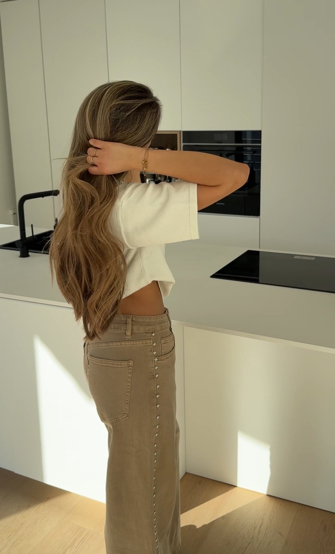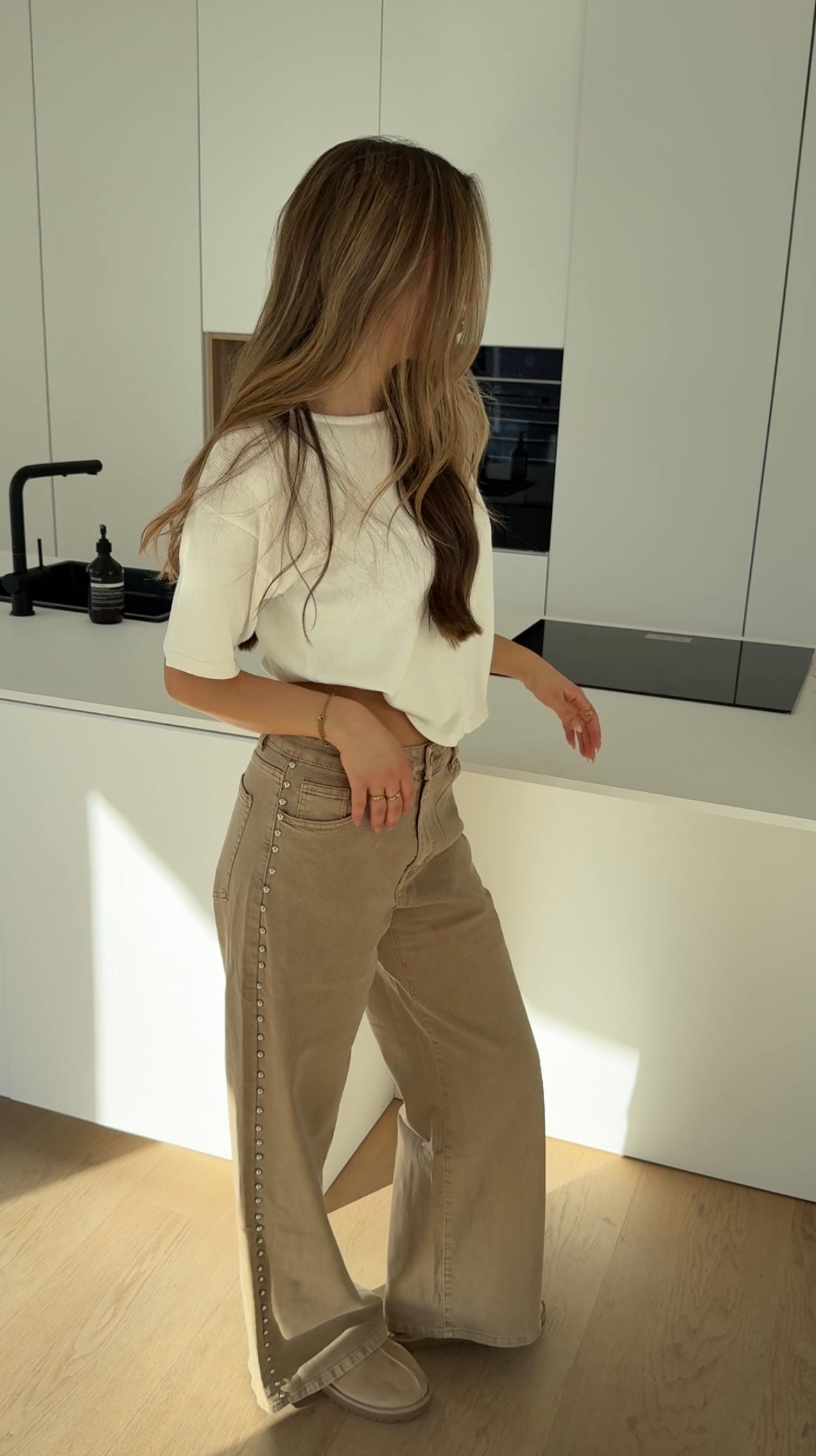 STUDDED JEANS LIGHT BEIGE